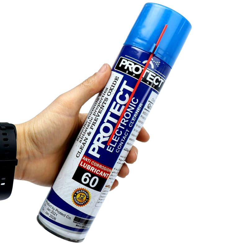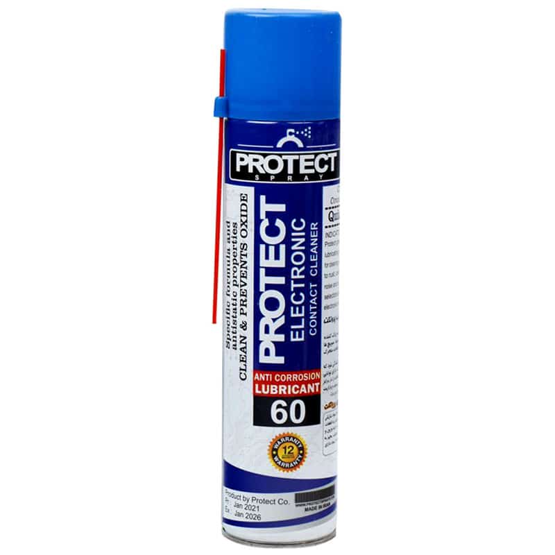 اسپری Contact Cleaner PROTECT 60 300ml افزون بر خاصیت روانکنندگی خود که آن را از اسپری خشک مجزا میکند، دارای توانایی ایجاد پوششی است که سطوح و قطعات را در برابر زنگزدگی و اکسیداسیون مقاوم مینماید؛ و پارازیت دستگاههای صوتی و تصویری را از بین میبرد.
