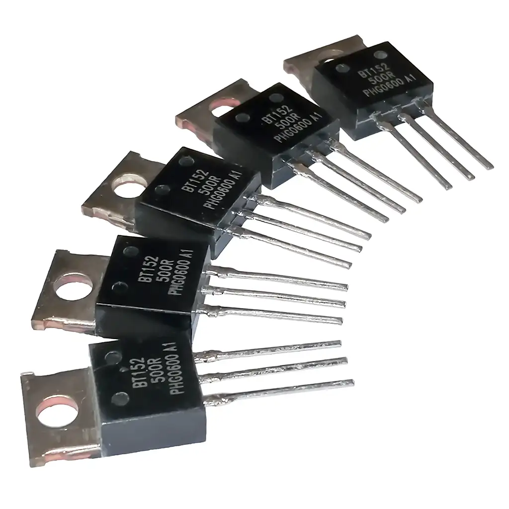 تریستور BT152 اورجینال – با پکیج TO220 ، تحمل ولتاژ 500 ولت و تحمل جریان  20 آمپر، یک المان پرکاربرد است که در بخش های مختلفی از صنایع الکترونیکی از جمله ساخت دیمر و ولتاژ رگولاتور اتوماتیک ژنراتور استفاده می‌شود.