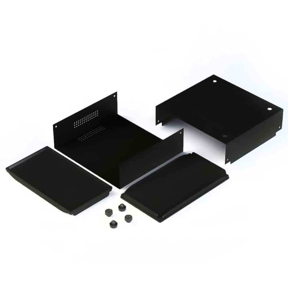 مگامدار / لیست محصولات / کیس - قاب - جعبه / جعبه فلزی / جعبه فلزی مدل MB-102 رنگ مشکی با رنگ کورهای الکترواستاتیک و پنل پلاستیکی
