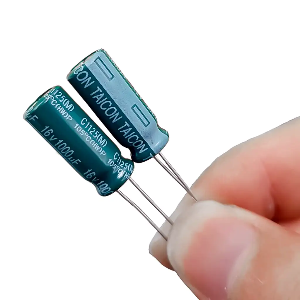خازن الکترولیتی 1000 میکروفاراد 16 ولت امپدانس پایین TAICON سری HW ساخت تایوان (طول عمر: 10,000 ساعت)