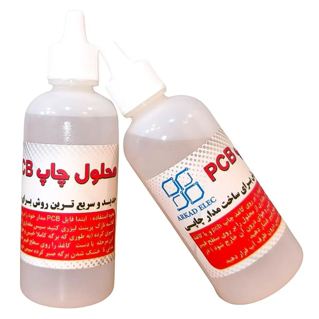 با استفاده از این محلول دیگر نیازی به اتو، دستگاه لامیناتور و وسایل دست و پاگیر سیلک اسکرین و… جهت ساخت pcb ندارید و تنها نیاز شما یک پرینتر لیزری، کاغذ گلاسه یا کاغذ مخصوص مدار چاپی که برای این کار ساخته شده است میباشد.