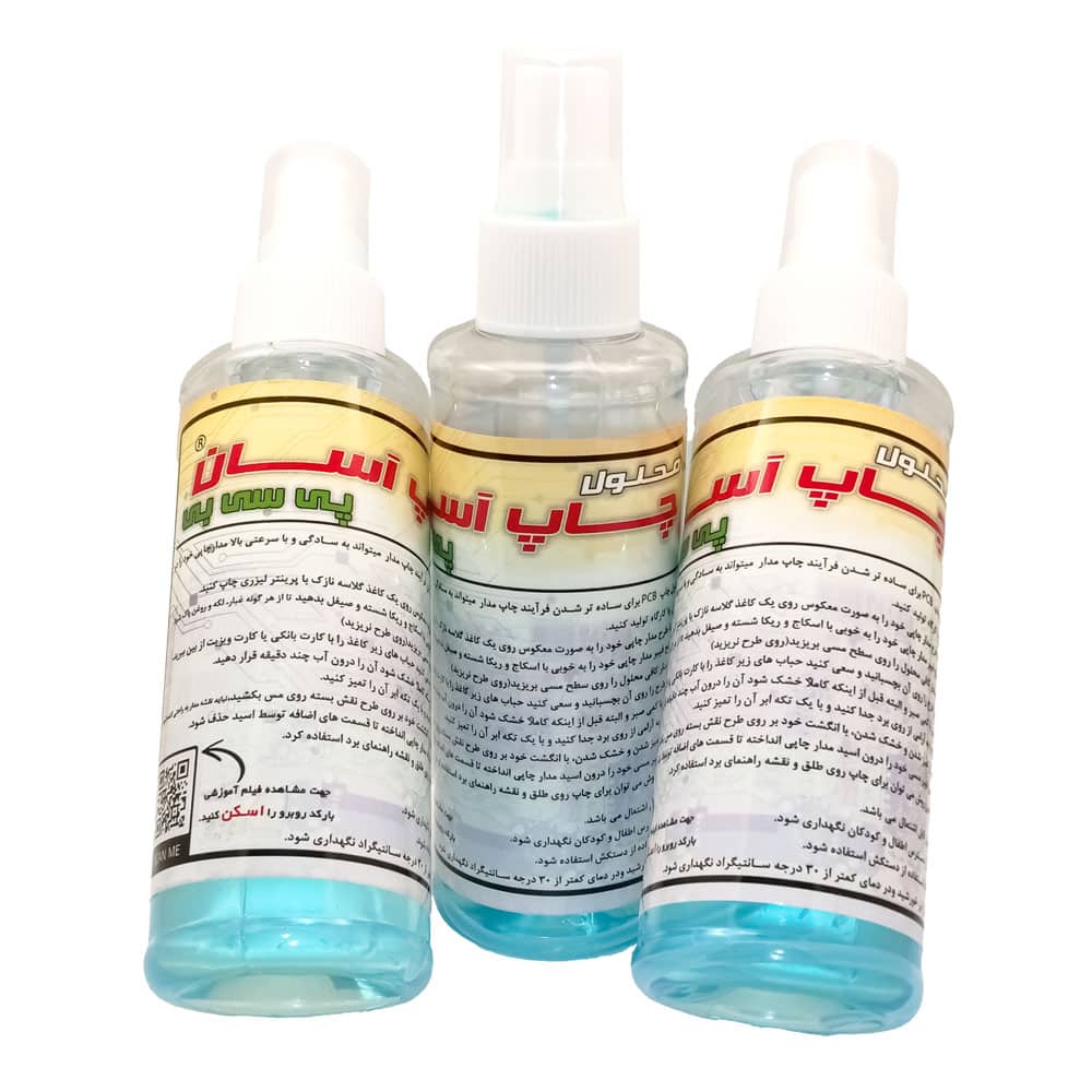 با استفاده از این محلول دیگر نیازی به اتو، دستگاه لامیناتور و وسایل دست و پاگیر سیلک اسکرین و… جهت ساخت pcb ندارید و تنها نیاز شما یک پرینتر لیزری، کاغذ گلاسه یا کاغذ مخصوص مدار چاپی که برای این کار ساخته شده است می‌باشد.