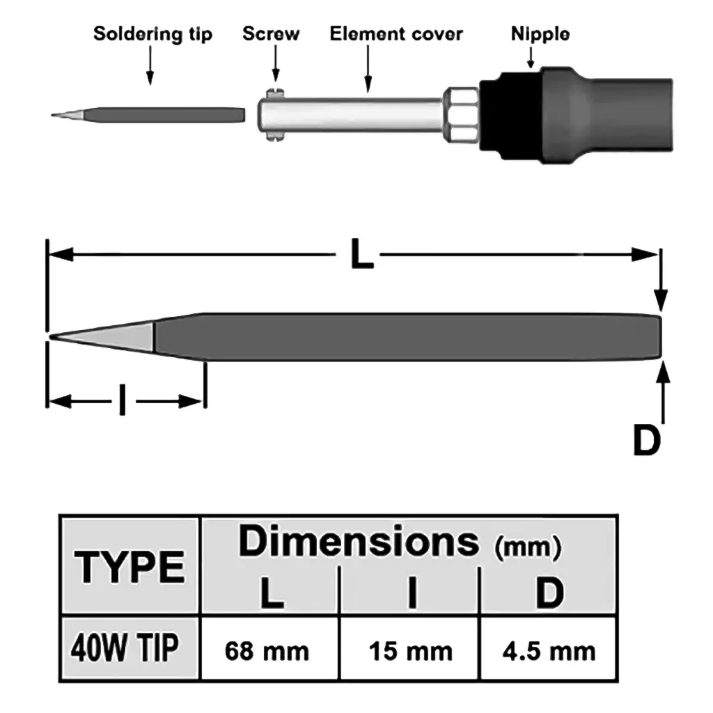 مگامدار / لیست محصولات / ابزار و تجهیزات / ابزار لحیم کاری / نوک هویه / نوک هویه مشکی 40 وات نسوز – مناسب انواع هویه استاندارد