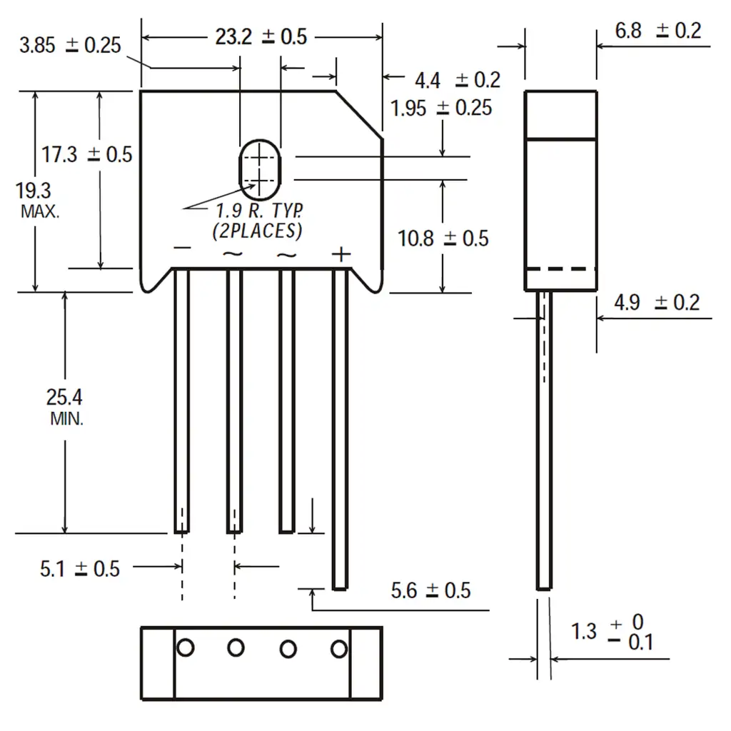 مشخصات فنی پل دیود 6 آمپر 1000 ولت مربعی BR610 :