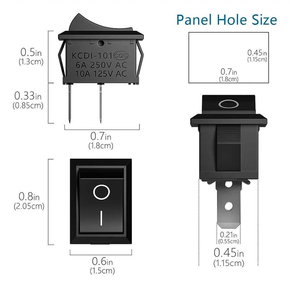 کلید راکر دو حالته دو پین 6 آمپر مدل KCD1-101 دارای مشخصات زیر میباشد: