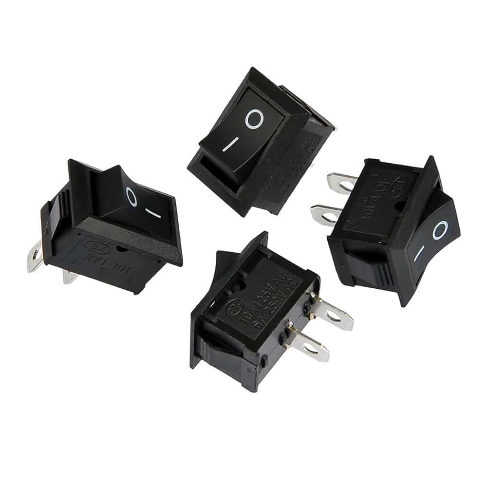 - کلید راکر تک پل تک مسیره (SPST): سادهترین نوع که یک مدار را قطع و وصل میکند.